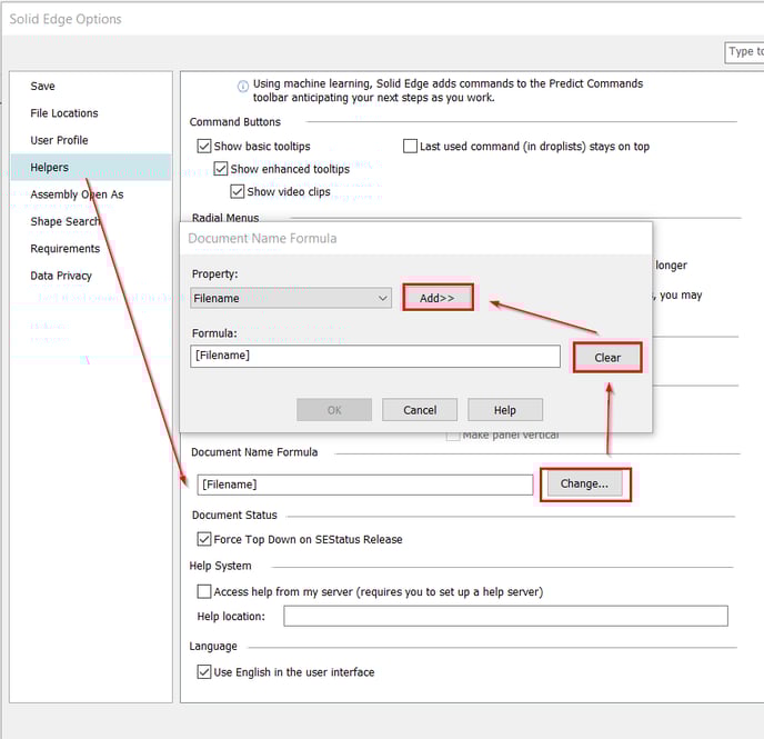 Hier ist es immer erforderlich in den Solid Edge Optionen unter Helpers das jeweilige Attribut zu definieren, das als Titel angezeigt werden soll.