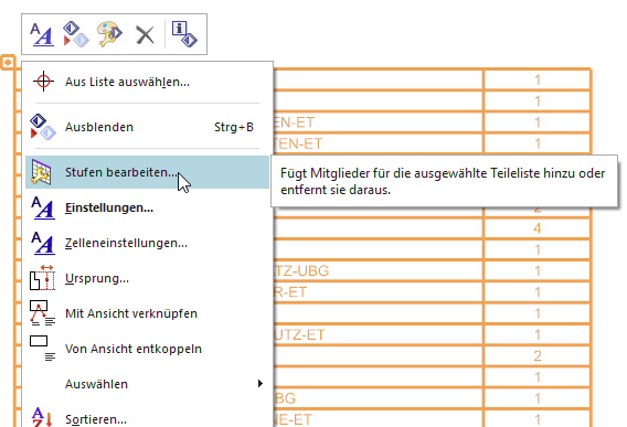 Um zu definieren, was in einer NX-Stückliste angezeigt wird, gibt es die Funktion STUFEN BEARBEITEN.
