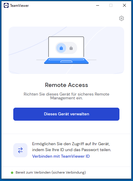 Im Teamviewer-Dialog, der sich dann öffnet, auf Dieses Gerät verwalten klicken.